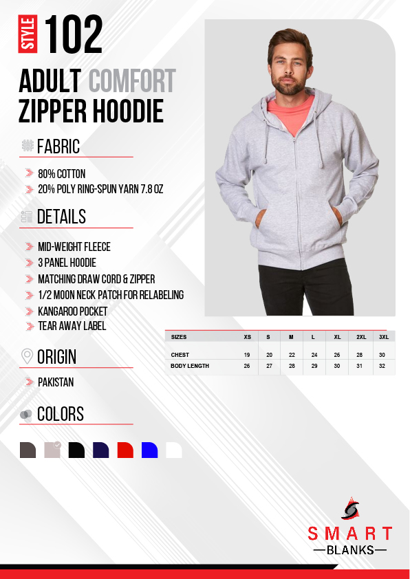 Everything you love about our Comfort Hoodie—now with the added versatility of a full-length zipper. Made from ultra-soft fabric with a smooth surface, it’s perfect for high-quality printing and custom designs.